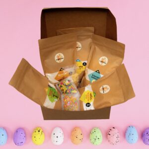 Kompletná sada na pečenie veľkonočných dobrôt. Nájdete v nej 5 zmesí na pečenie - barančeka, mazanec, veľkonočný koláč a 2 druhy sušienok, k tomu na dozdobenie pestrofarebný cukrový posyp so zajačikmi, minilentilky a mandľové plátky na mazanec. Recepty na polevy a zdobenie sušienok a koláča nájdete v balíčku.