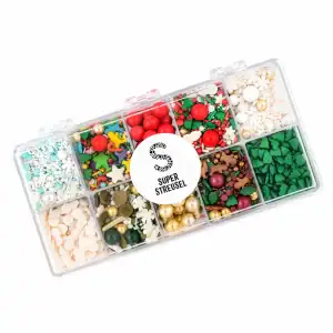 Hurá Vianoce! je ďalší fantastický zimný SuperBox, naplnený najnovšími zmesami na vianočné posýpky! Prekypuje lahodnými cukrovými posýpkami, jemnými čokoládovými guľôčkami, cukrovými tyčinkami a extra dávkou lásky. Zlaté a zimné posýpky udávajú tón a čakajú na váš ozdobný dotyk. Tento pretekajúci SuperBox je perfektným darčekom pre každého amatérskeho pekára, dokonalým prekvapením pre vašu priateľku alebo jednoducho tým najúžasnejším prekvapením pre ľudí, ktorí skutočne milujú pečenie. Určite sa vám dostane večnej vďaky.