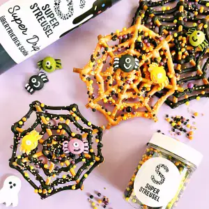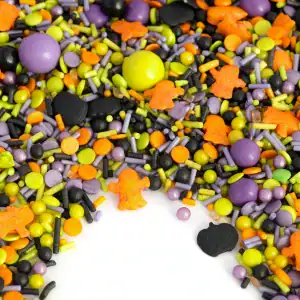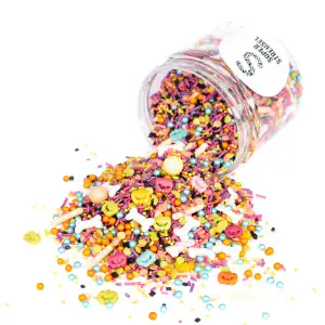 Strašidelný posyp prináša všetko, po čom vaše strašidelné srdce túži: oranžové duchy a čierne tekvice, fialové a zelené čokoládové guľôčky, malé fialové mini chrumkavé guľôčky a drzé konfety vo fialovej, zelenej a čiernej farbe – všetko ručne namiešané pre dokonalú strašidelnú žiaru. Či už ide o halloweensku tortu, koláčiky alebo párty s príšerkami – s týmto posypom sa každé sústo stane malým šokujúcim momentom plným radosti!