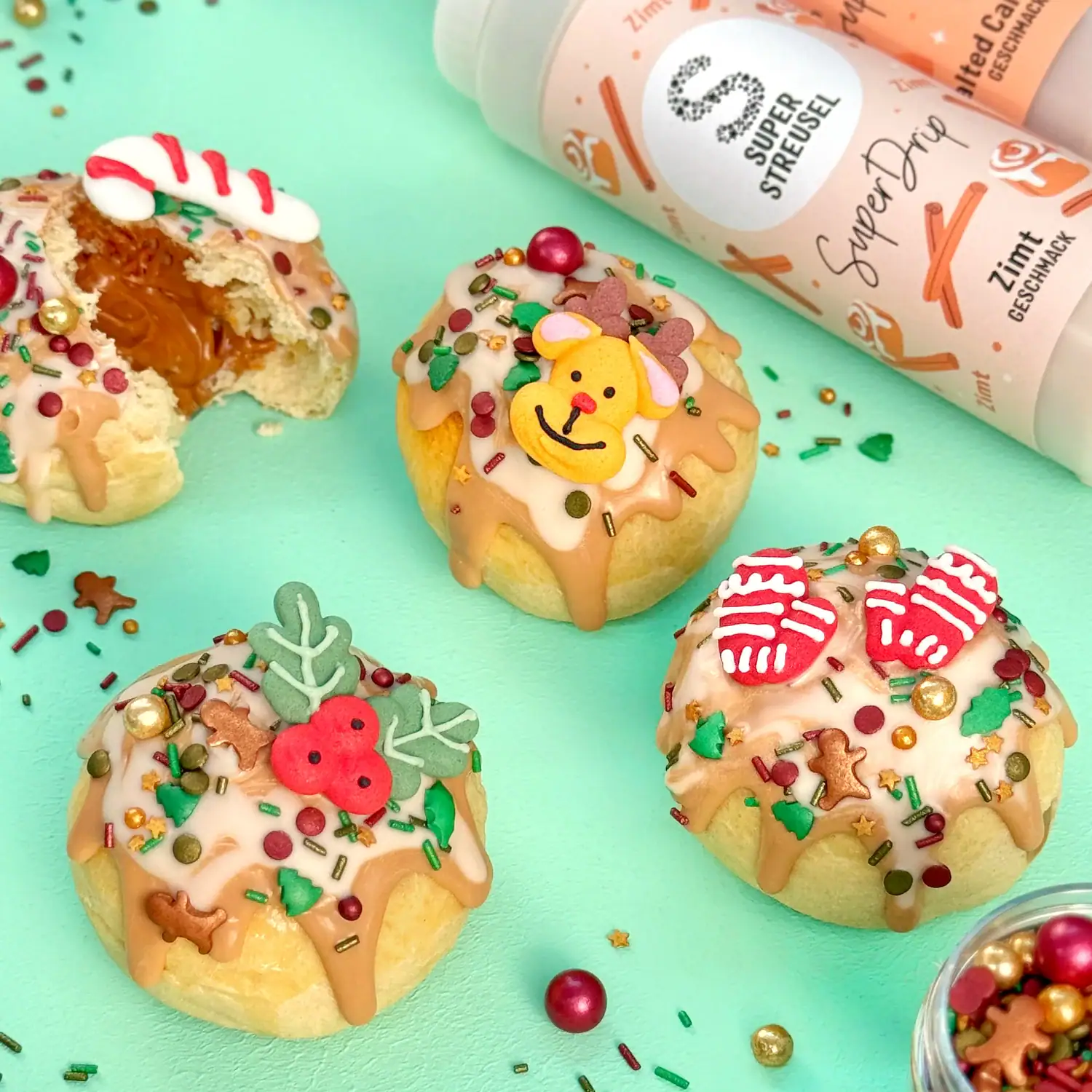 SuperDrip rýchlo zohrejte v mikrovlnnej rúre alebo vo vodnom kúpeli. Potom ho nalejte priamo na muffiny, sušienky, torty a zmrzlinu. Alebo si môžete vyrobiť vlastné ozdoby na torty – je to super jednoduché! SuperDrip schne oveľa rýchlejšie ako čokoláda, vďaka čomu je perfektným základom pre cukrové posypy.