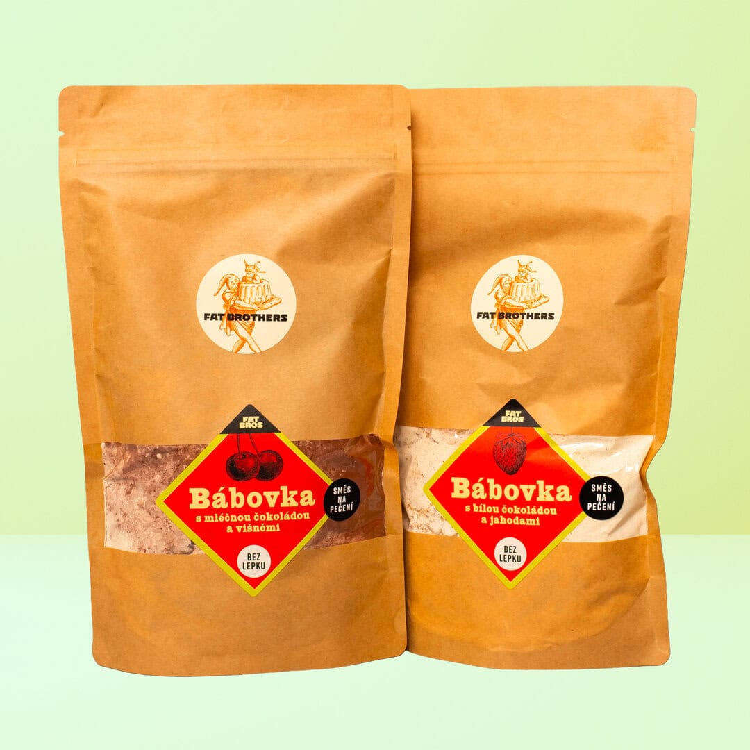 Dve ovocné bezlepkové bábovky jahodová a višňová s čokoládou – zmesi na pečenie. Dve sypké zmesi na úžasné bábovky z našej špeciálnej zmesi gaštanovej, kukuričnej, pohánkovej a ryžovej múky s bielou čokoládou a jahodami a višňami a mliečnou čokoládou NIELEN pre bezlepkovú diétu. Stačí vysypať do misy, zamiešať s vajíčkami, maslom a tvarohom a upiecť. Pečenie z domácich surovín, bez zbytkov a neporiadku.