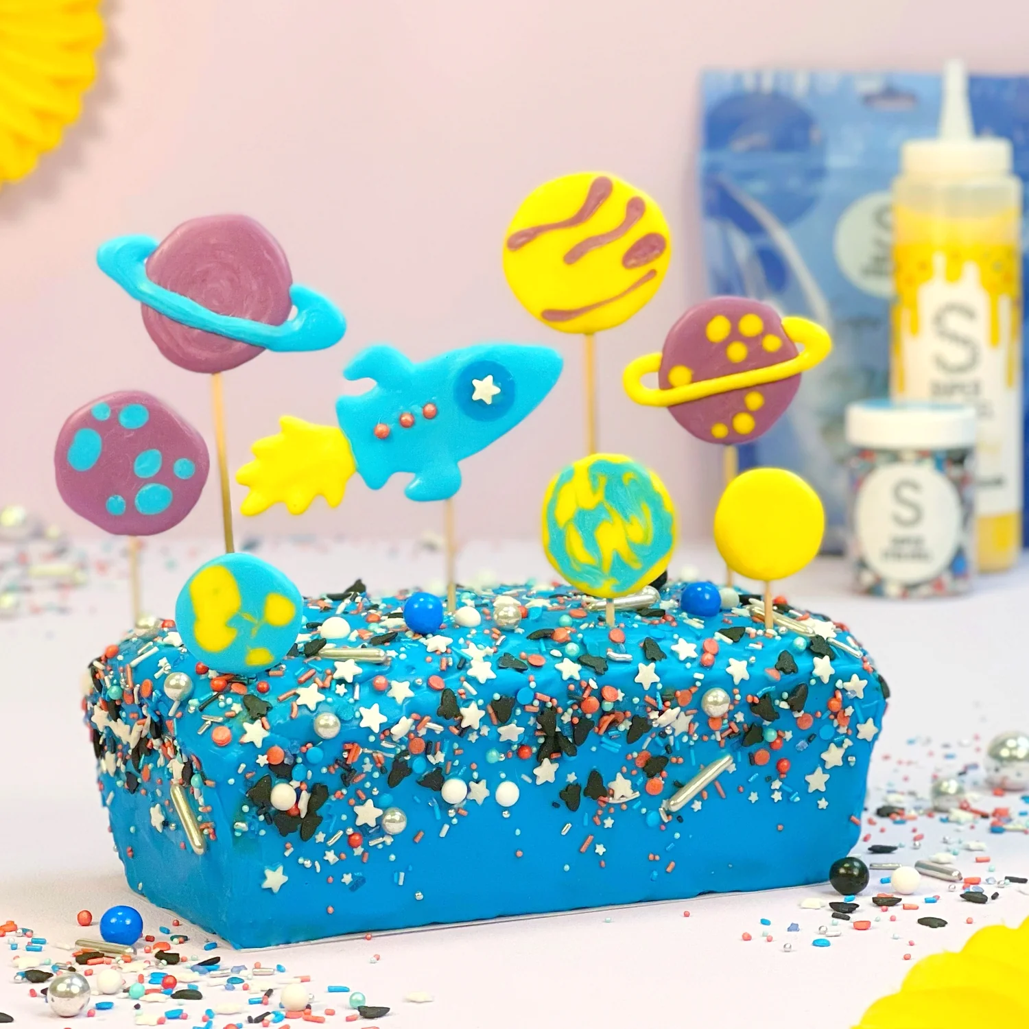 Hravý cukrový posyp na koláče a torty Vesmírna raketa – Happy Sprinkles