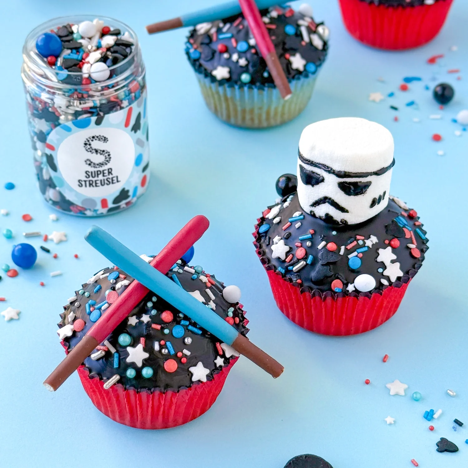 Táto zmes na cukrový posyp je hitom u všetkých nadšencov rakiet, staviteľov Lega, ašpirujúcich astronautov, vesmírnych fanúšikov a párty zvierat po celej galaxii. Obsahuje množstvo rockových posýpok: modré konfety, modré cukrové posýpky, veľké, jemné čokoládové guľôčky v modrej a výraznej čiernej farbe, červené konfety, strieborné perly a strieborné cukrové tyčinky. K tomu niekoľko veľkých bielych cukrových hviezd z vesmíru a jemné biele čokoládové guľôčky. A úplne nový doplnok: raketové posypy! Vyrobený v Nemecku.