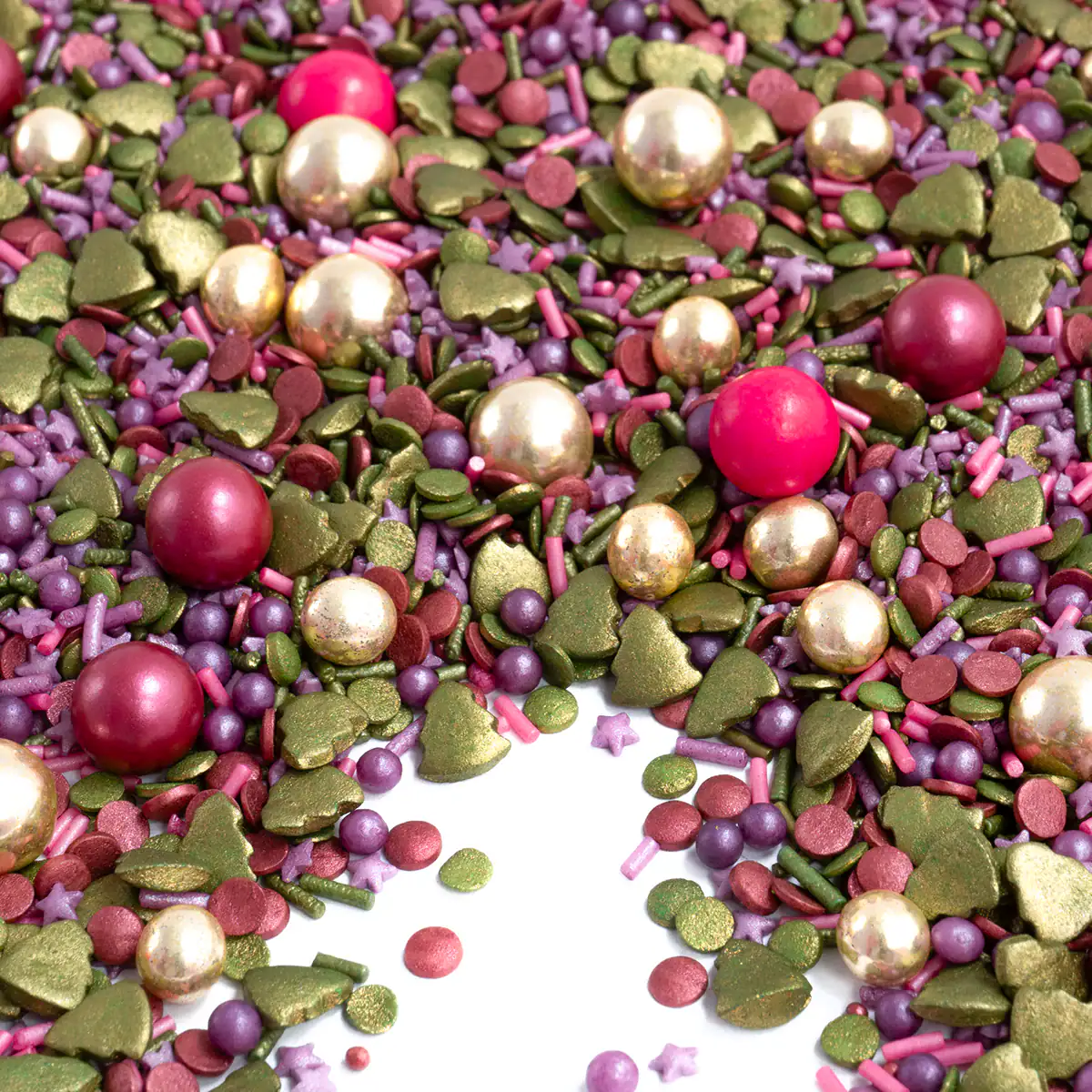 Veľká sada na pestrofarebné, trochu netradičné vianočné pečenie a zdobenie s tromi farbami – fialovou, žltou a zelenou a ružovou, krásnym farebným posypom. S našimi perníkovými a voňavými muffinmi a silikónovou podložkou zdarma.